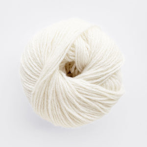 This DK-weight cashmere is perfect for projects that call for timeless simplicity and pure indulgence: think sumptuous scarves, classic pullovers, and heirloom accessories. It glides smoothly off the needles, producing a balanced, even fabric with a gentle halo and impeccable stitch definition.