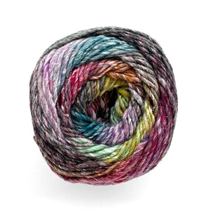 Rikka is a stunning blend of Corriedale and merino spun with Peruvian alpaca and undyed mulberry silk. As with most Noro yarns, Rikka is a self self-striping style, but the undyed silk adds touches of white throughout the skein, adding a slightly marled look to these colorful skeins.