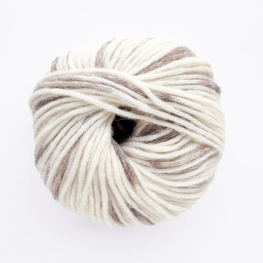 Modern color meets cozy texture in Mode at Rowan Colormix. A soft, lofty strand blends muted tones over a warm cream base, giving your fabric subtle movement and a gentle halo — the kind of marled look that makes even simple stitches feel special.