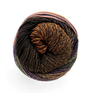 Laines du Nord Poema Color is a stunning fingering-weight yarn that effortlessly blends color into your knitting. Each 100% wool cake features long, gradual gradients that shift from shade to shade, creating an effortless ombré effect without the need to change skeins. Each skein is half neutral and half multi-colored.