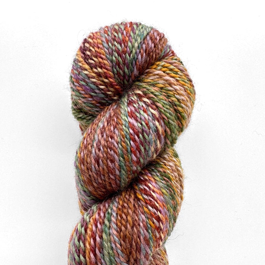 Feederbrook Farms Entropy DK is a hand-dyed, artisan DK-weight yarn with character and charm in every stitch. Spun from 100% Bluefaced Leicester wool that’s dyed before spinning, the fibers blend into dynamic, shifting gradients as you knit. That fleece-dyed construction creates a barber-pole effect and a look that’s unmistakably reminiscent of handspun — rich with movement and subtle variation.