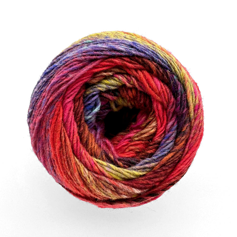 Noro Ito is a show-stopper of a yarn — a slubby, self-striping worsted-weight wool that bursts with vibrant color transitions and natural texture. Each generous 200 gram skein contains a long color sequence that unfolds as you knit, creating rich visual interest without the need to change skeins.